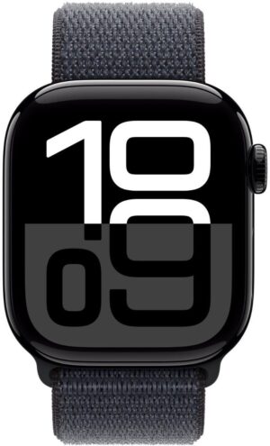 Apple Watch Series 10 GPS 42mm Jet Black Aluminium with Ink Sport Loop (Ink Strap, Free Size)
