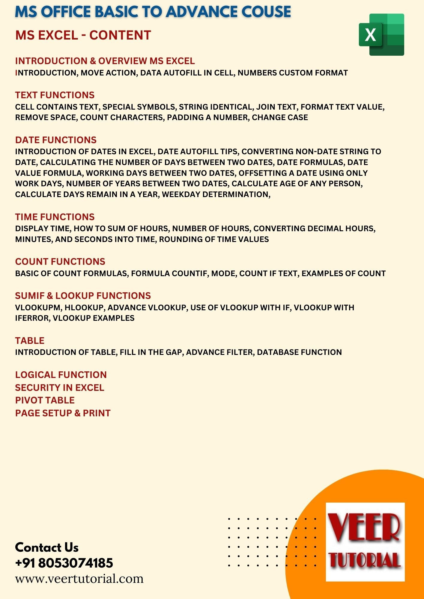 Unlock the full potential of Microsoft Office with our expertly designed video training series. Whether you’re a beginner or an advanced user, this course covers everything you need to know to enhance your skills in Excel, Word, PowerPoint, Outlook, and more. Complete Microsoft Office Training: Learn the essentials and advanced features of Microsoft Office 2019, 2021, and Office 365. Comprehensive Video Lessons: Clear, step-by-step tutorials designed for all skill levels, from beginners to professionals. Convenient DVD Format + Online Access: Watch at your own pace with both physical and digital access through our website, VeerTutorial.com. Lifetime Access & Updates: Enjoy lifetime access to the course with free updates to keep you current with new features. Expert Instruction: Courses led by industry professionals with 20+ years of experience in Microsoft Office applications. Excel: Master formulas, data analysis, pivot tables, and automation. Word: Learn document creation, formatting, mail merge, tables, and more. PowerPoint: Design stunning presentations with slides, animations, and transitions. Outlook: Manage emails, tasks, contacts, and calendars like a pro. This training is perfect for students, professionals, job seekers, and anyone looking to improve their MS Office skills. Whether you’re working on personal projects or aiming to excel in your career, our course will guide you through every step of using Office effectively.